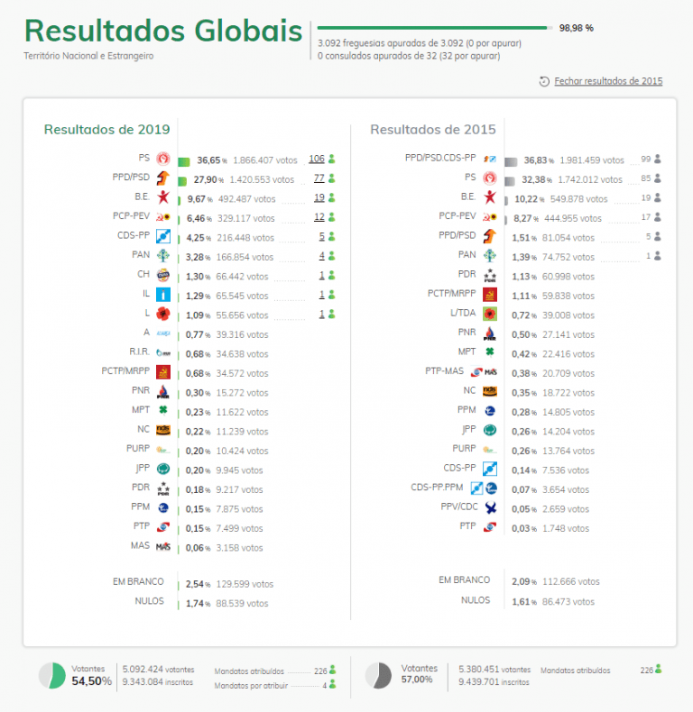 Está coalición, apodada Geringonça, resultó sorprendentemente estable, por lo que para estas elecciones, se hablaba de reeditar esta alianza.
