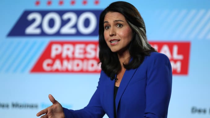 Tulsi Gabbard: Representante de Hawaii. Veterana de guerra de origen polinesio. Candidata residual en todos los estados menos en Hawaii, donde se encuentran sus votantes.Se opone al aborto y al matrimonio homosexual, por lo que pugna por el voto conservador, pero es criticada por un sector Demócrata.