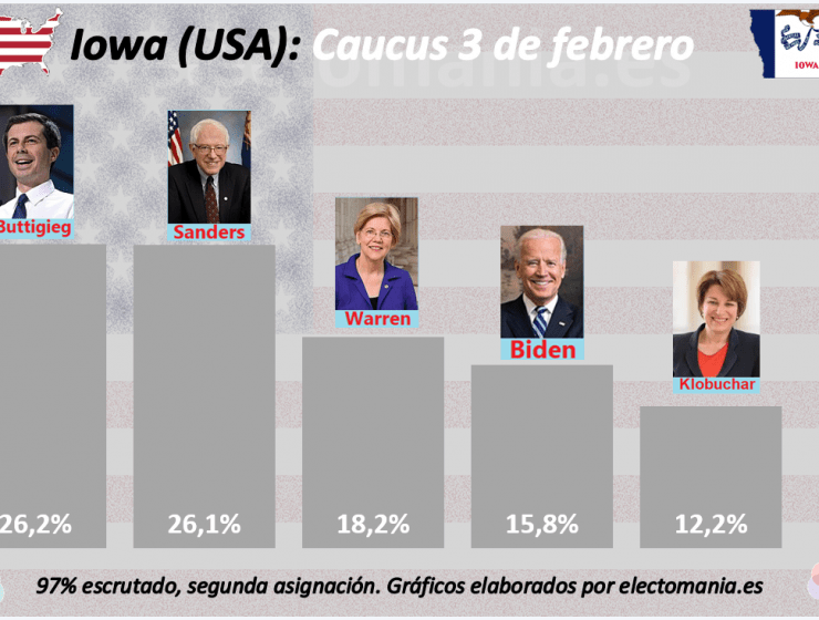 Gana Sanders pero si el apoyo esperado, gran éxito para Buttigieg e increíble dato para Klobuchar después del Rallie Alcista después del último debate. Sonoro fracaso para Warren que no salva los papeles y cae estrepitosamente y gran derrota para Biden, quinto en un estado que le era favorable.